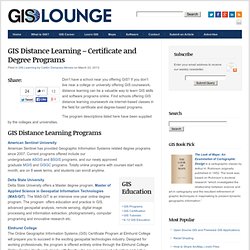 University Distance Learning Opportunities . Soils & GIS .  For GIS courses and certificate or degree programs in particular, you can find other options (Google – GIS distance learning). These were located via internet search. Others may exist that were not found.  ... Retrieve Content